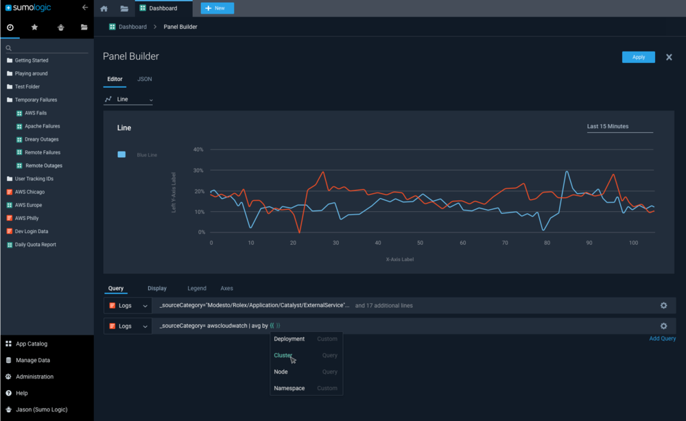 Dev Ops Engineers are often on-call, and tasked with solving problems with their cloud application. He doesn't have time to use Sumo Logic's query language, and relies more heavily on using pre-existing dashboards as a jumping off point to find the route cause of the issue. He needs to be able to manipulate the view of his dashboard based on his knowledge of his applications.