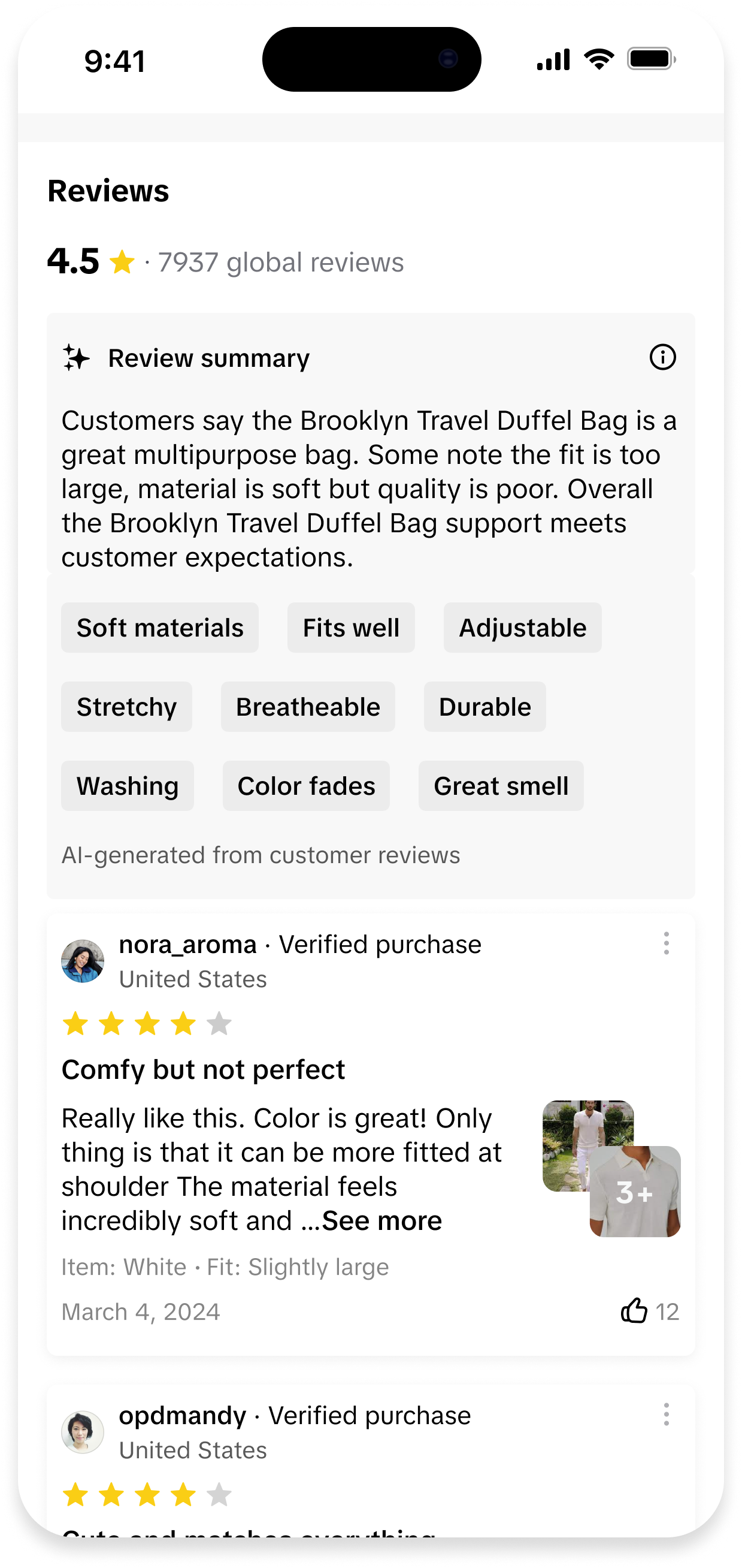 As the design lead for TikTok Shop’s reviews team, I defined the first AI experiences for TikTok Shop. I also improved review exposure by transforming product reviews from a vertical product to a horizontal platform, ensuring scalability by spearheading a team component library that was made to integrate with the broader TikTok Shop design system.